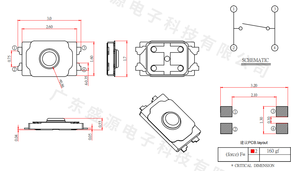TS-1626 1.6x2.6x0.55四脚