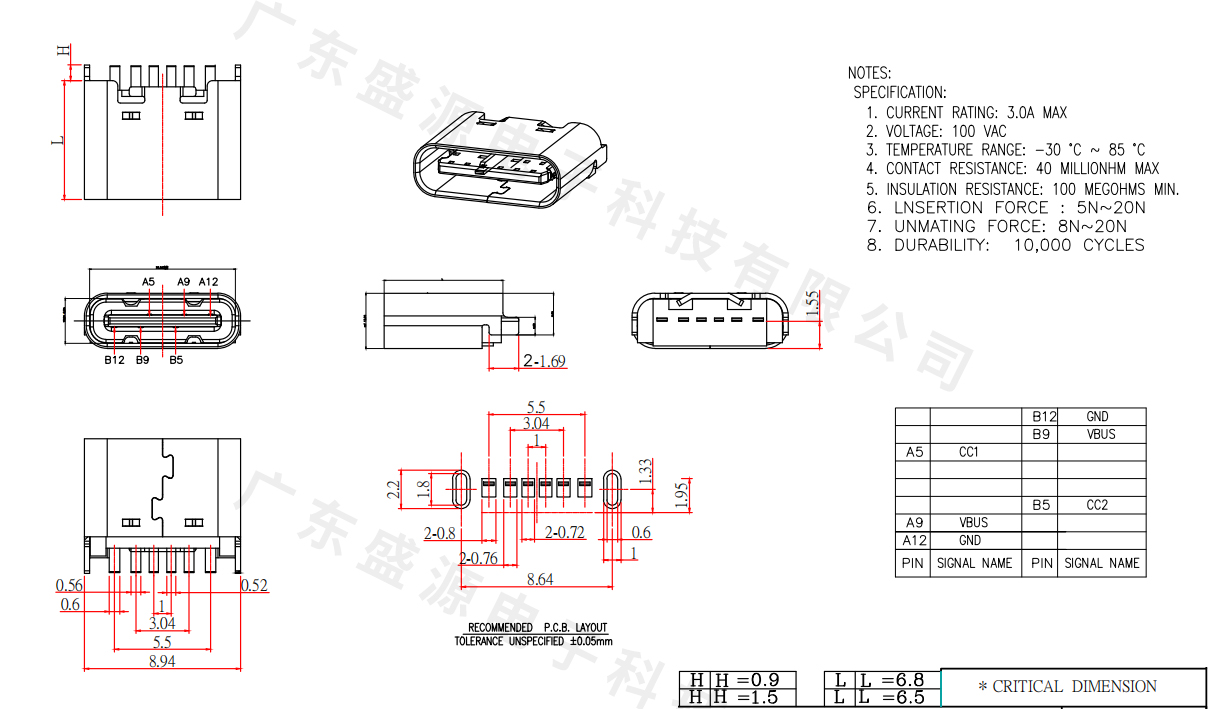 TC-06M01CB-BK059 (沉板0.8 6PIN 壳长6.8)