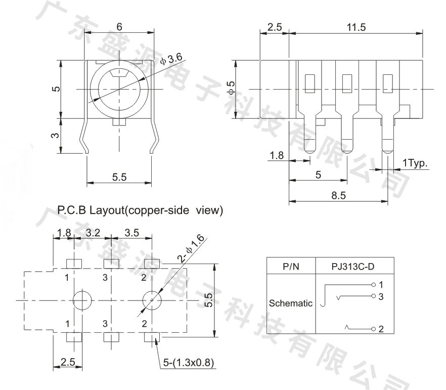 PJ-313C 3.5插件耳机插座