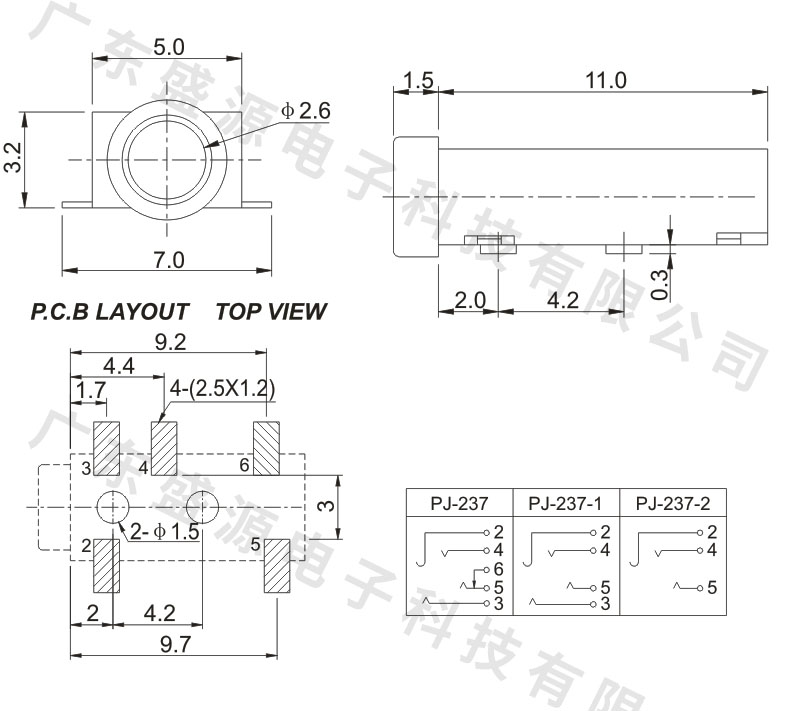 PJ-237 2.5贴片耳机插座