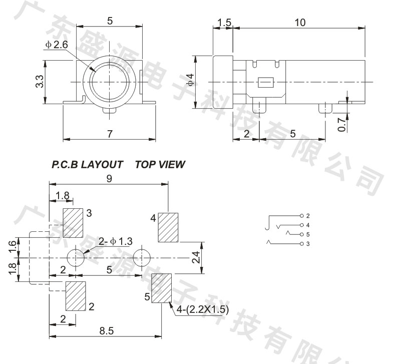 PJ-234 2.5贴片耳机插座
