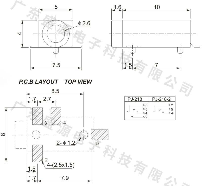 PJ-218 2.5贴片耳机插座