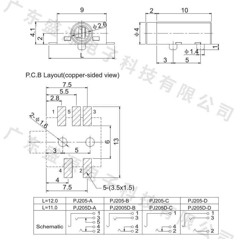 PJ-205 2.5贴片耳机插座
