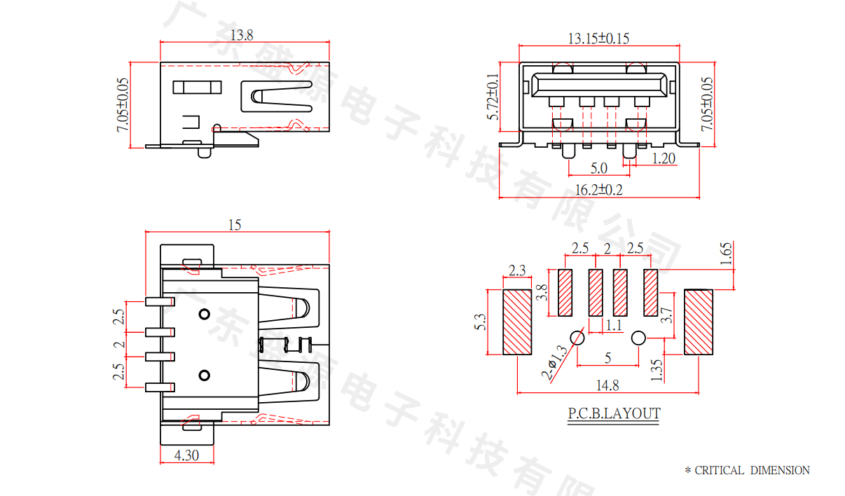 91-2.0USB01-660壳长(全贴13.7壳 1.2柱 直边)