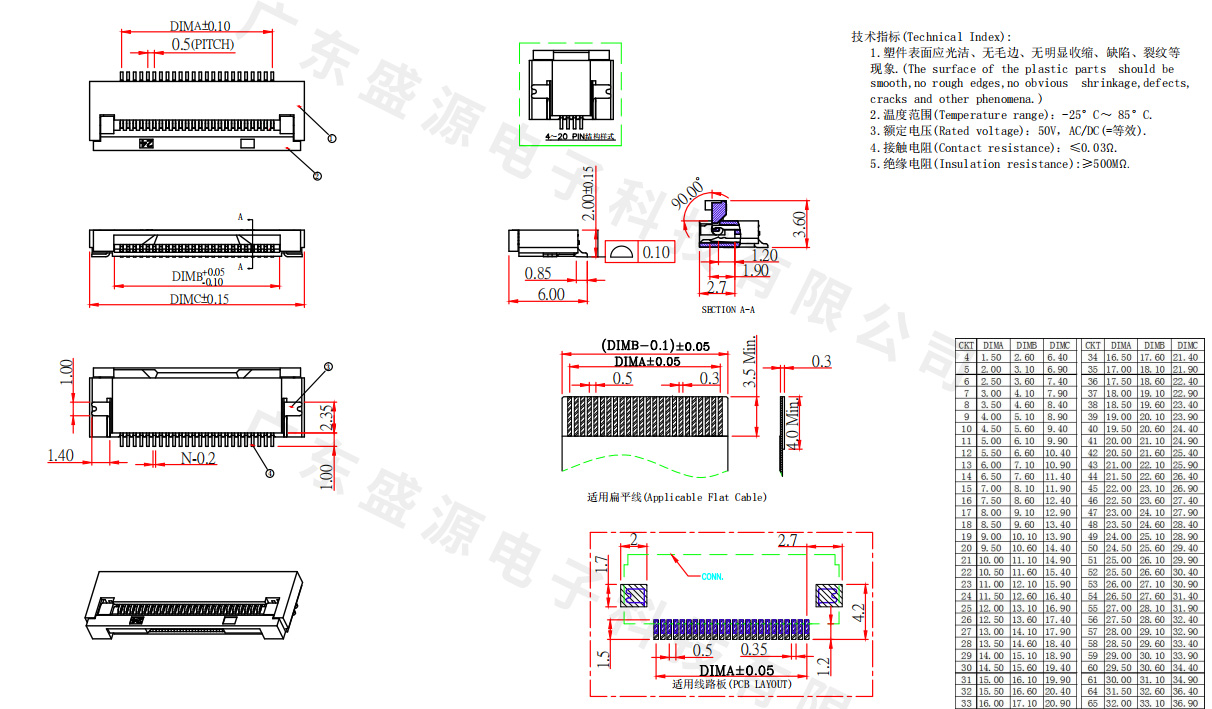 FPC0.3A- XP -1.0H 前插后掀