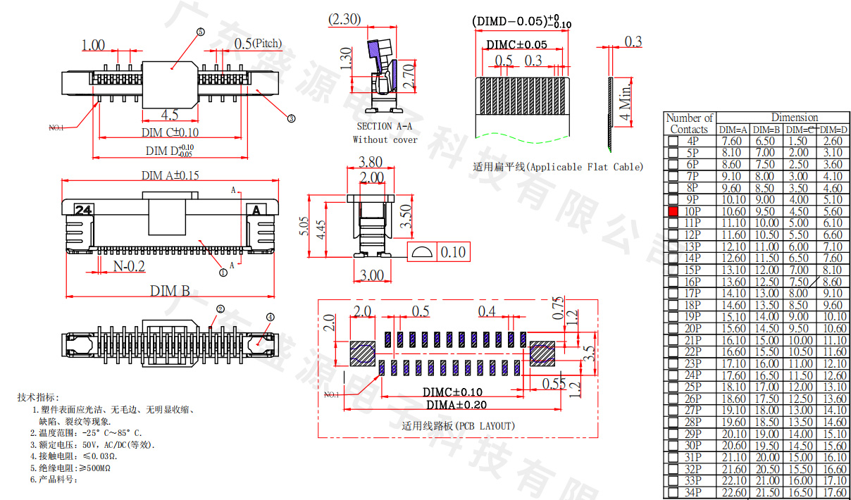 FPC0.5G-LT-XP-H4.45 错位正脚 立贴