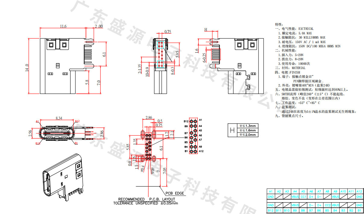 TC-16M01CB-BK005(沉板1.6单排16PIN贴片)