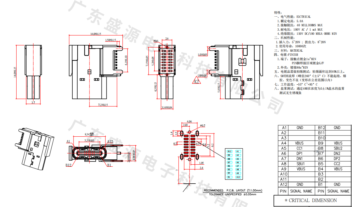 TC-16M01CB-BK005(沉板1.6单排16PIN贴片)