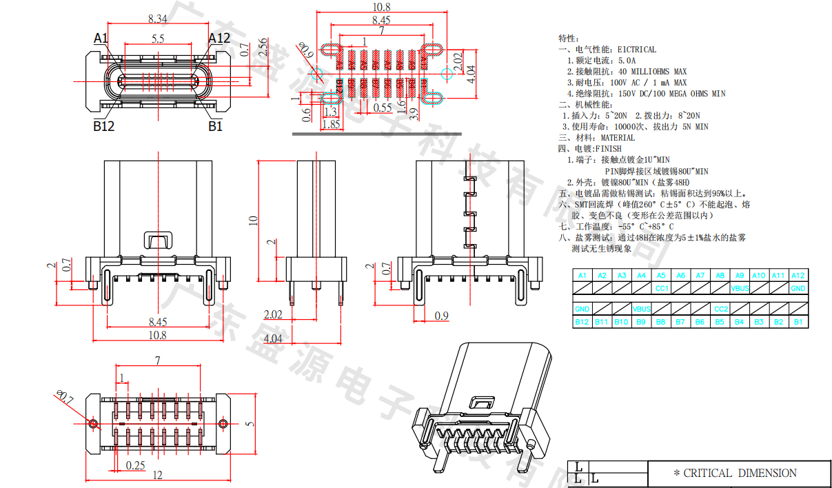 TC-16M01CB-BK005(沉板1.6单排16PIN贴片)
