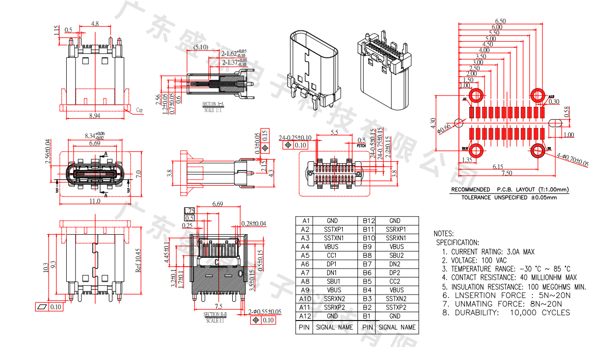 TC-16M01CB-BK005(沉板1.6单排16PIN贴片)