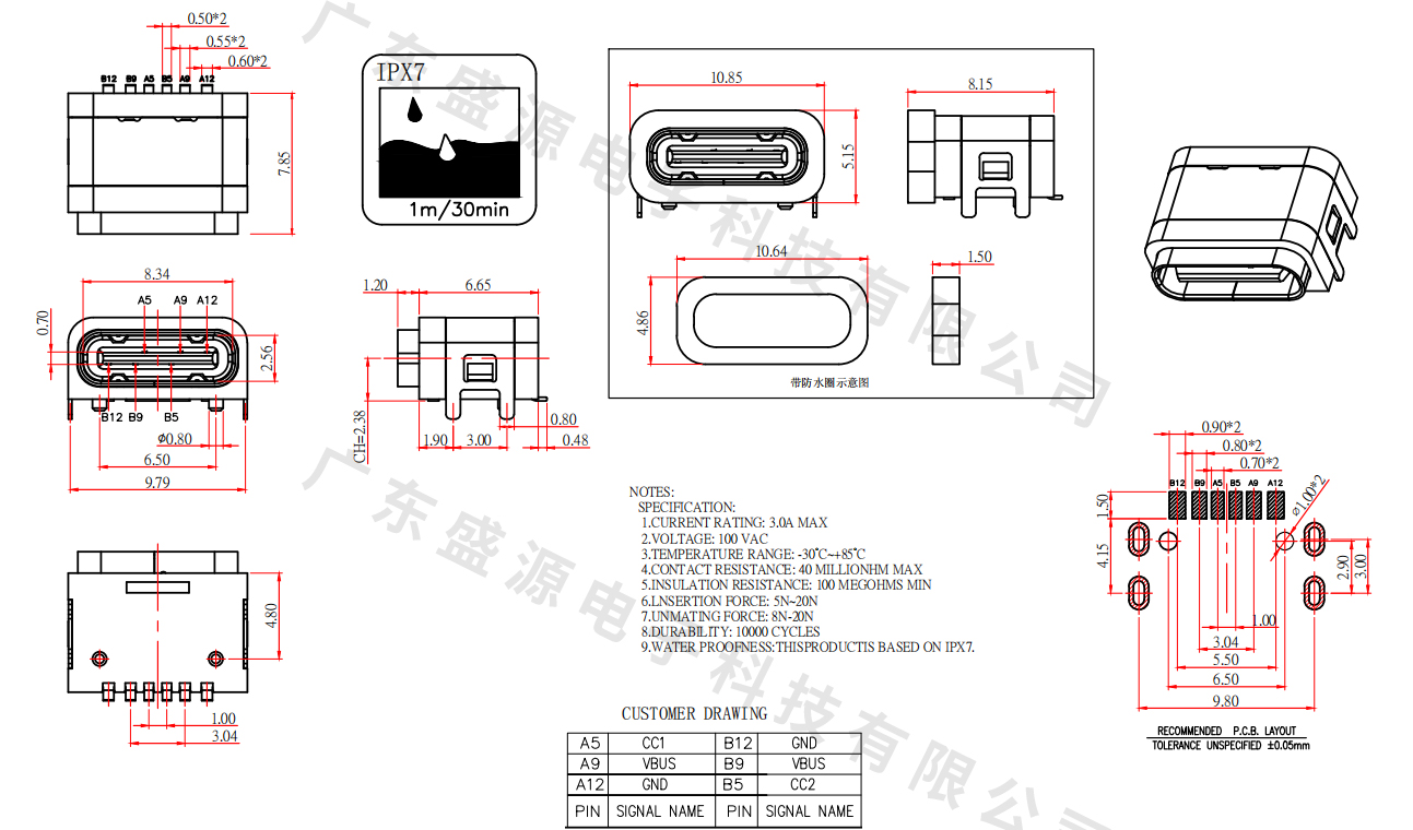 TC-06(FS)M01MD-BK056A(7.9 板上单排6PIN防水)