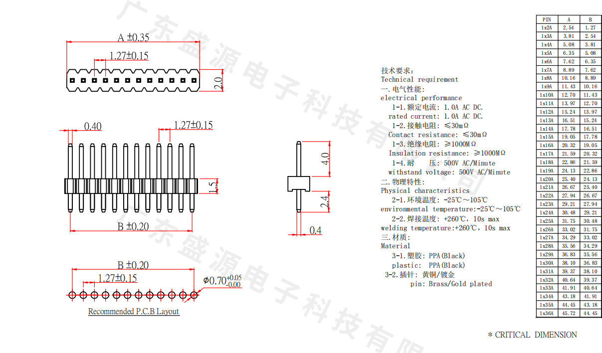 PH1.27 DIP直插单排排针