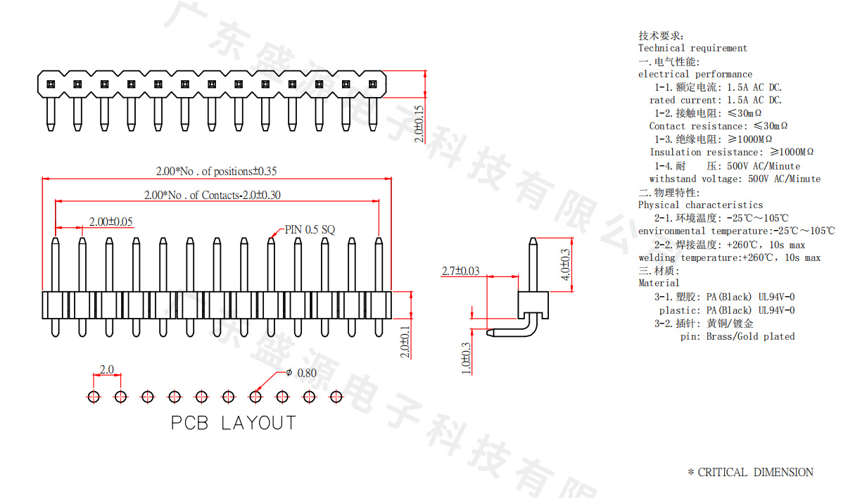 PH2.0 90度单排排针