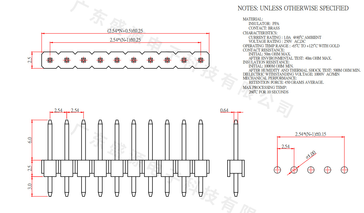 PH2.54 DIP直插单排排针