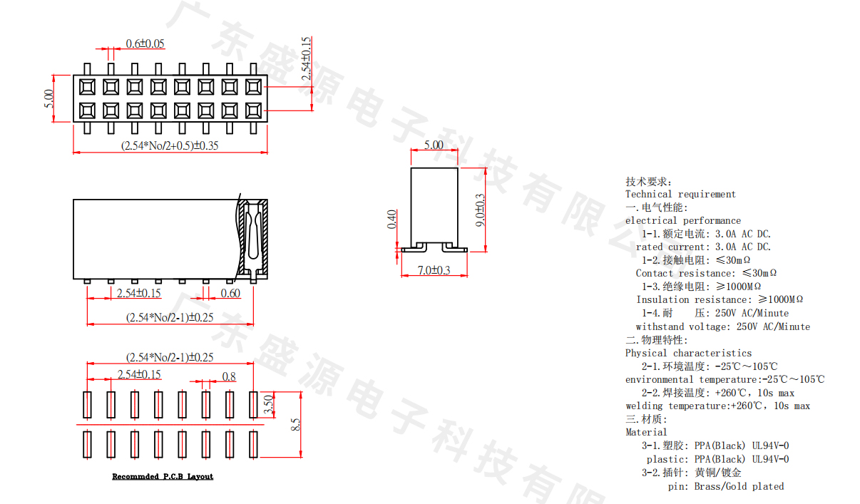 PF-2D(X)P-2.54-L-SMT 双排